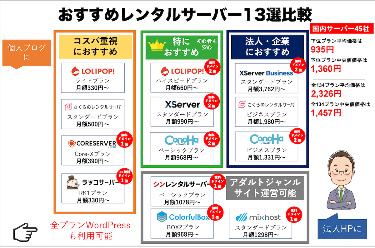 私自身もブログ初心者でしたので、レンタルサーバーの選定につきましては、他サイトを参考にさせていただきました。